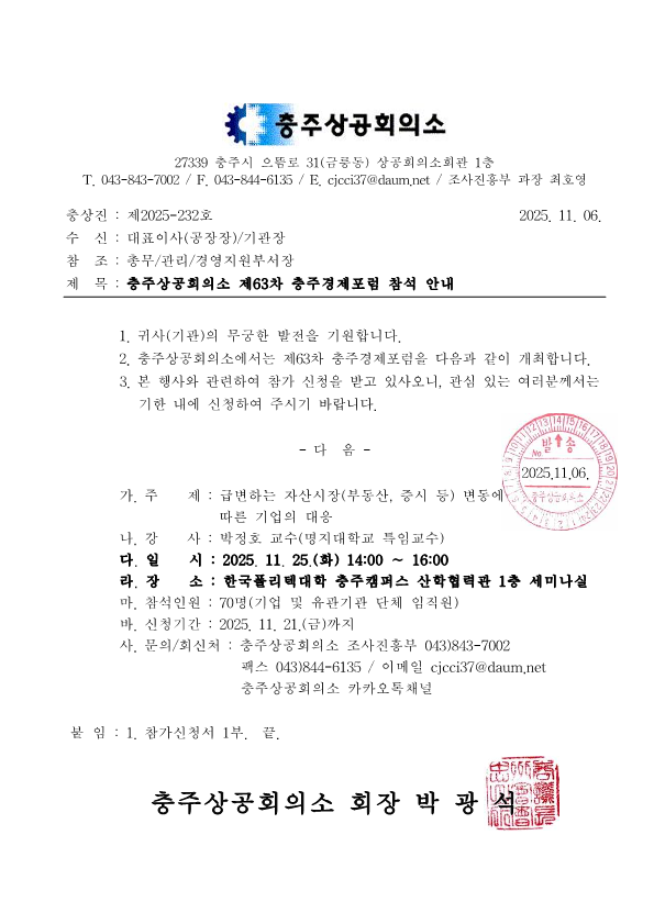| 제목 | 2025년 11월 제63차 충주경제포럼 | ||