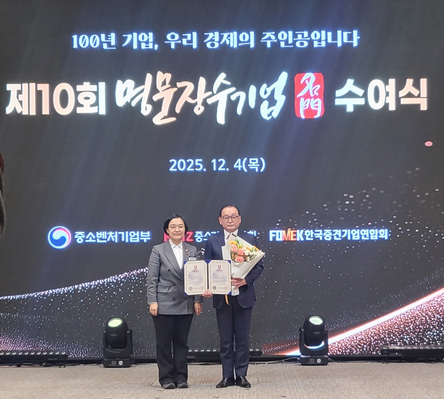 명문장수기업은 국내 업력 45년 이상 기업 중 경제적·사회적 기여도, R&D 등 혁신 활동을 종합 평가하여 선정하는 명예로운 제도로, 올해 96개 기업이 신청한 가운데 10개 기업만이 선정되는 영예를 안았다.